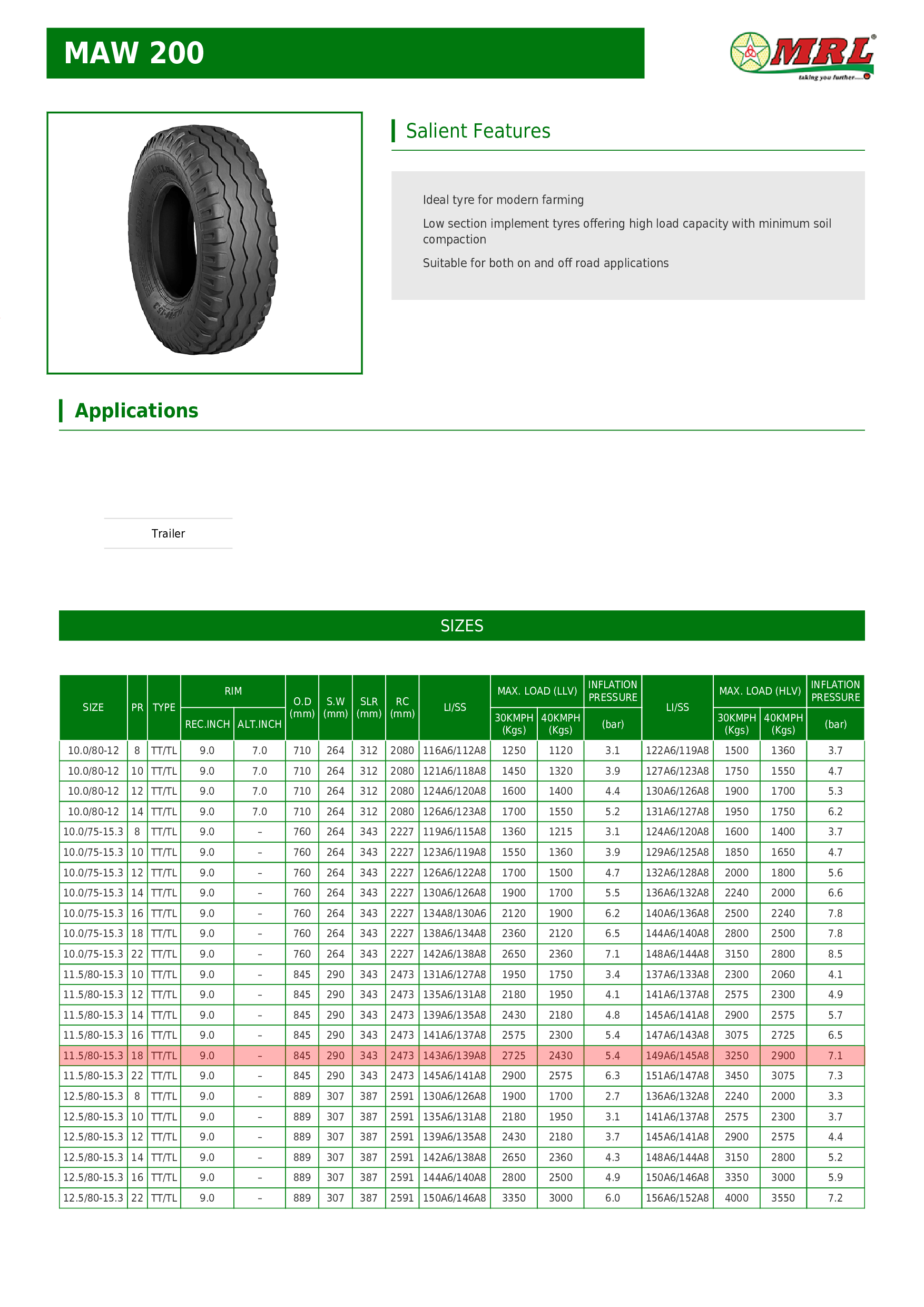 11.5/80-15.3 MRL MAW200 18PR 143A6/139A8 TT