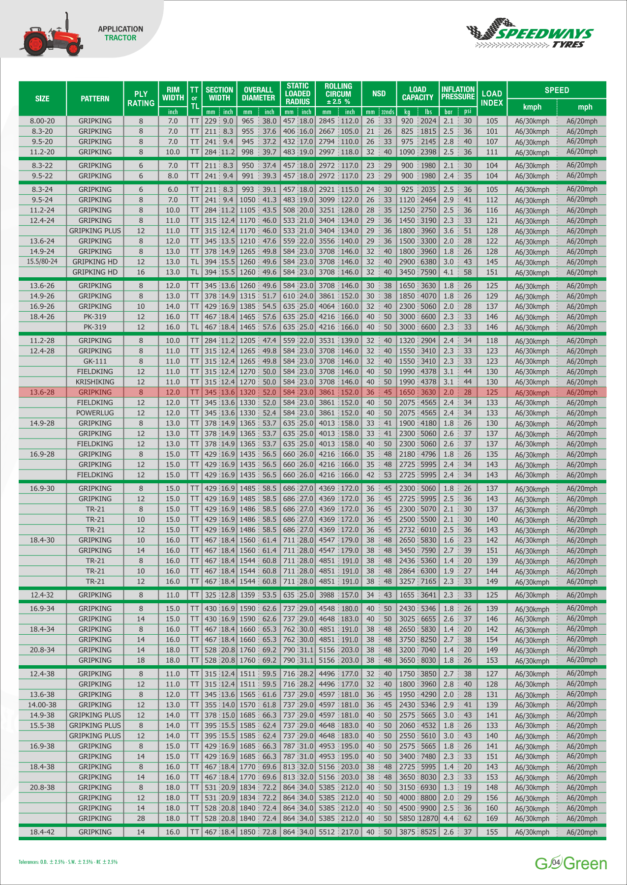 Speedways Gripking jest wytrzymałą oponą rolniczą sprawdzoną w polu przez naszych klientów. Jej głównymi cechami jest nowy, zapewniający maksymalną trakcję bieżnik. Dodatkowo dzięki wysokim klockom bieżnika i wolno ścierającej się mieszance opona ta sklasyfikowana jest jako bardzo żywotna, zapewniająca długą i bezproblemową pracę.