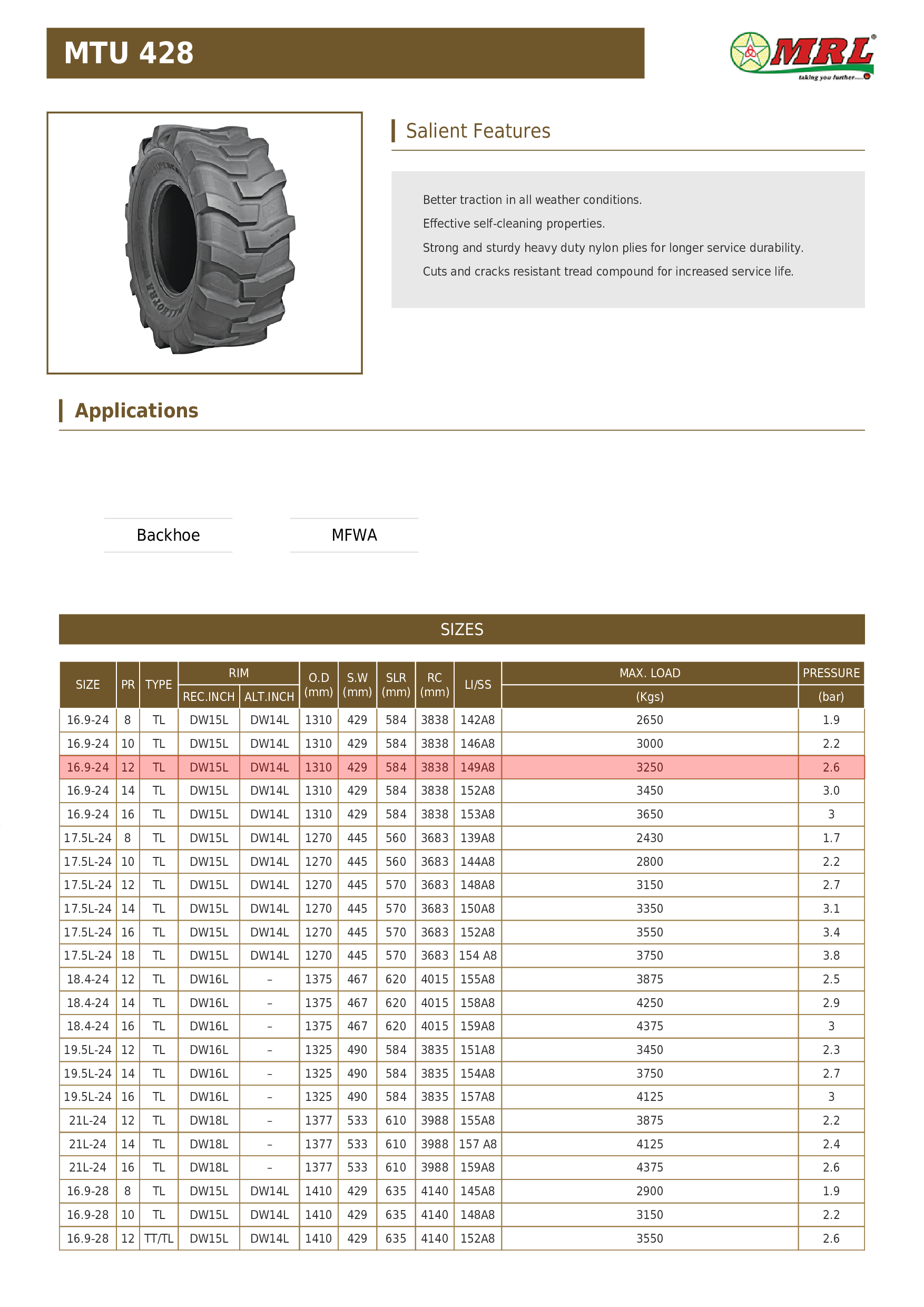 16.9-24 (440/80-24) MRL MTU 428 12PR 149A8 TL