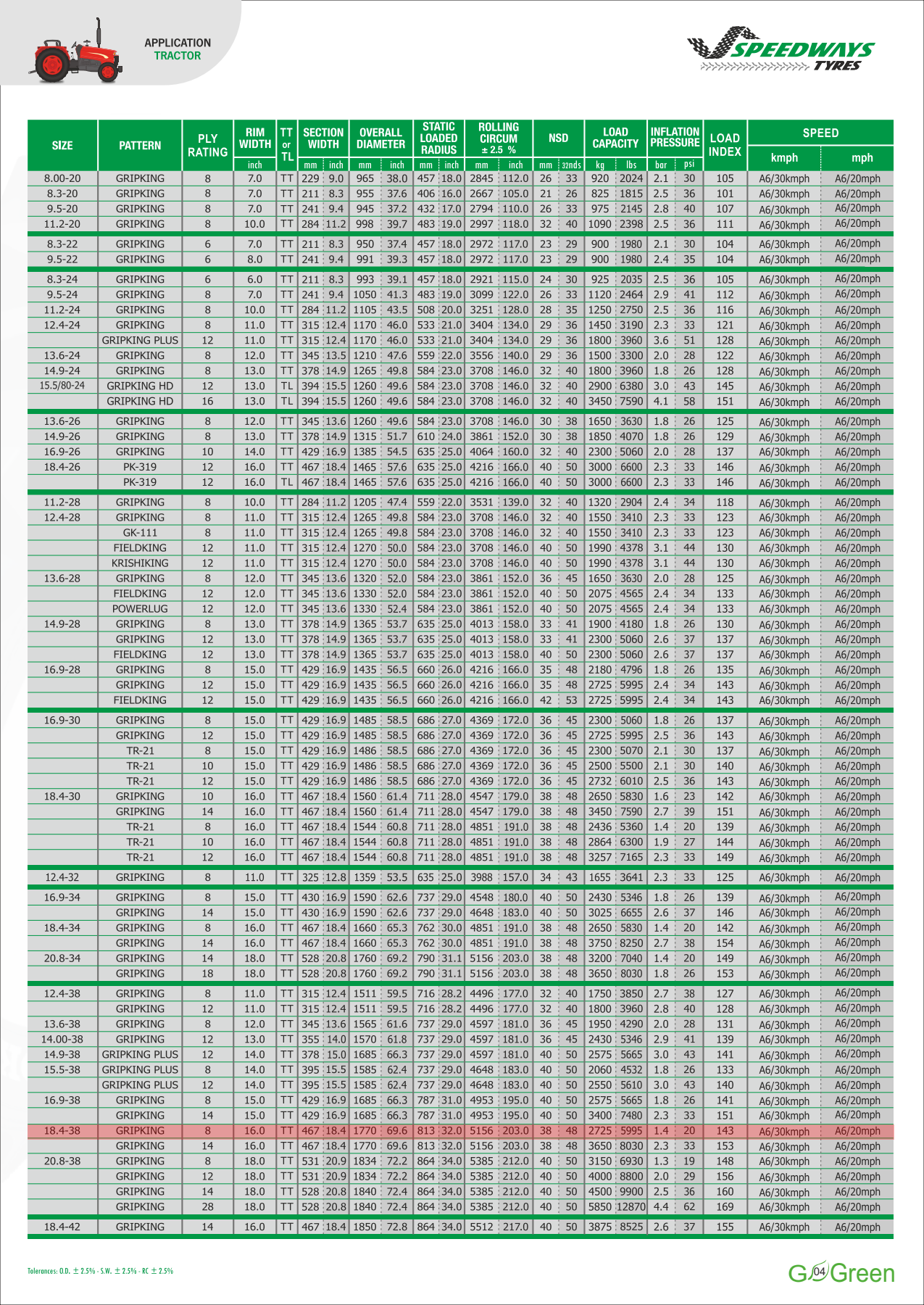 Speedways Gripking jest wytrzymałą oponą rolniczą sprawdzoną w polu przez naszych klientów. Jej głównymi cechami jest  nowy, zapewniający maksymalną trakcję bieżnik. Dodatkowo dzięki wysokim klockom bieżnika i wolno ścierającej się mieszance opona ta sklasyfikowana jest jako bardzo żywotna, zapewniająca długą i bezproblemową pracę.