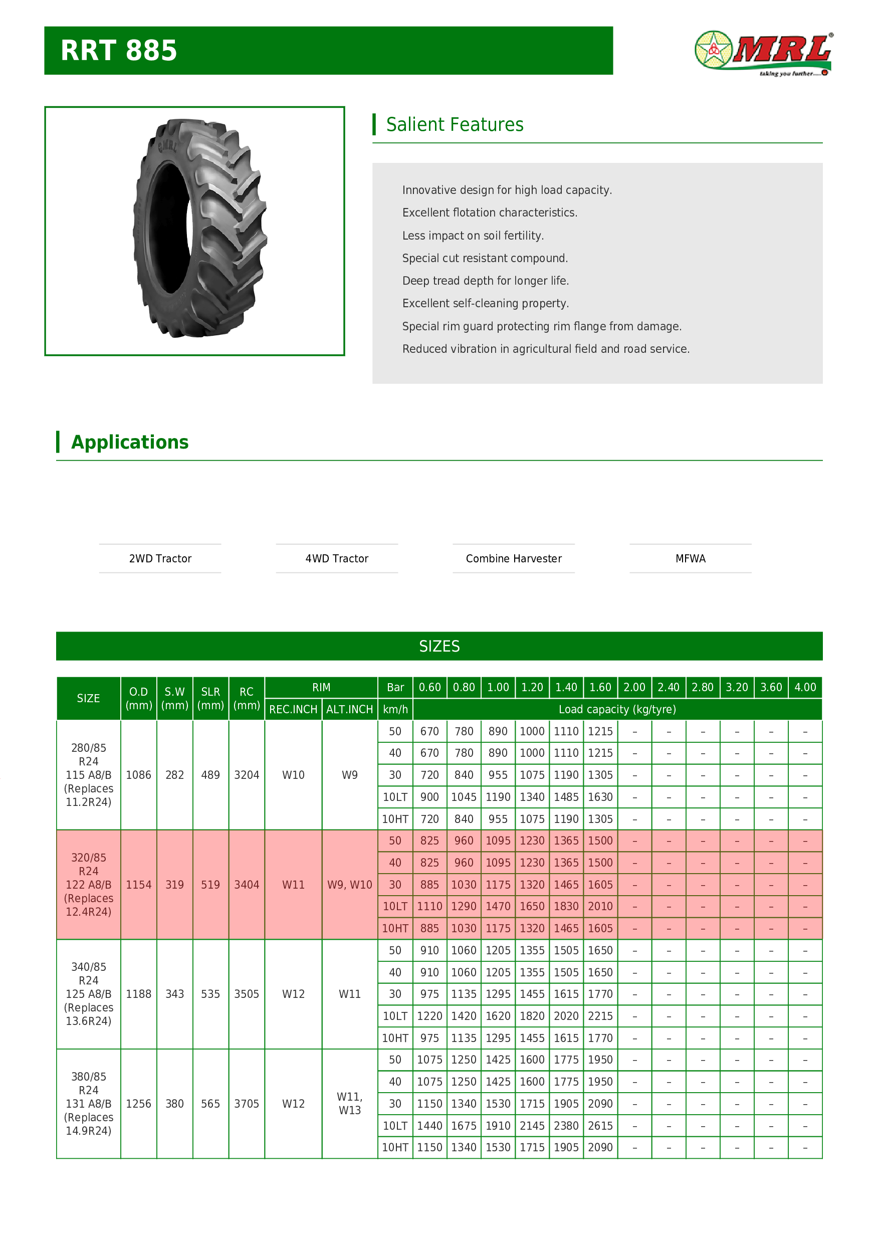 Firma MRL posiada w swojej ofercie szeroki wybór opon w różnych rozmiarach, w jej fabrykach produkowane są: opony rolnicze, opony przemysłowe, wszystkie opony MRL objęte są gwarancją producenta i wytwarzane są z uwzględnieniem wszelkich norm dotyczących produkcji ogumienia.