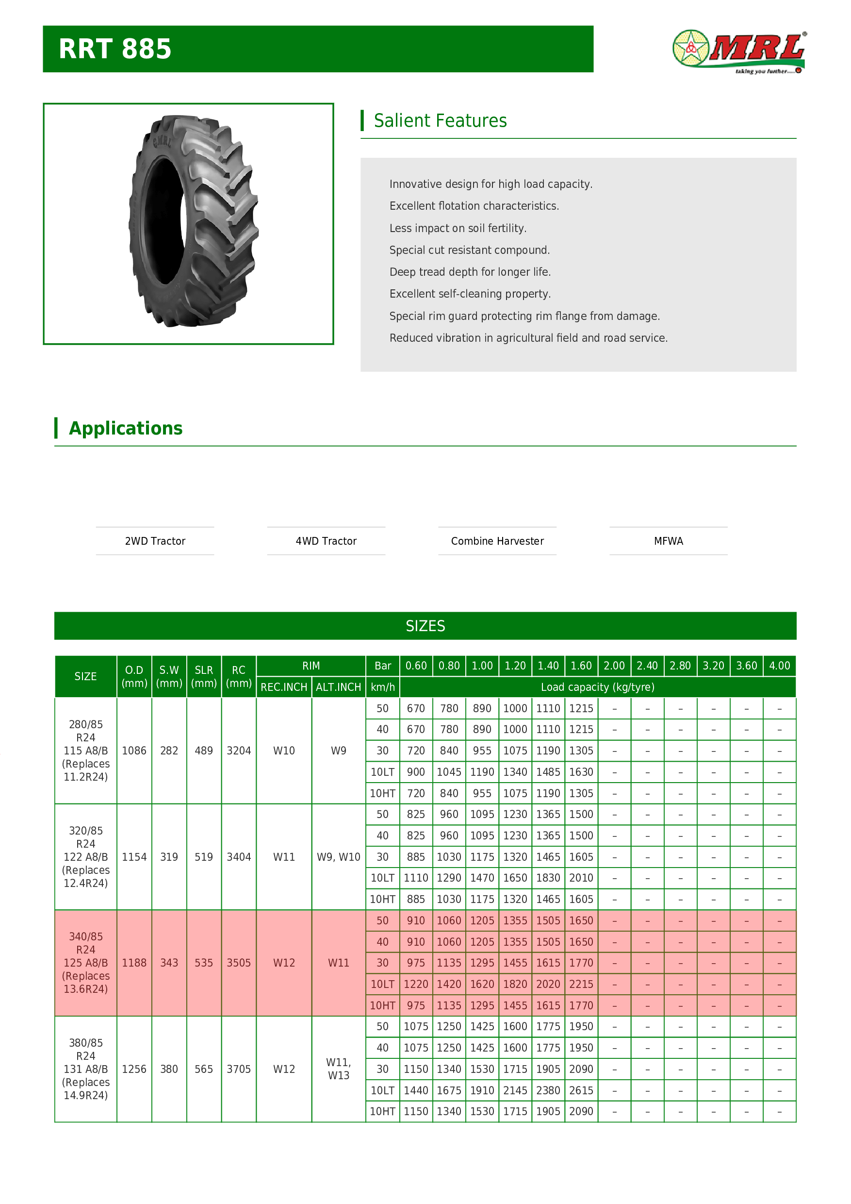 Firma MRL posiada w swojej ofercie szeroki wybór opon w różnych rozmiarach, w jej fabrykach produkowane są: opony rolnicze, opony przemysłowe, wszystkie opony MRL objęte są gwarancją producenta i wytwarzane są z uwzględnieniem wszelkich norm dotyczących produkcji ogumienia.